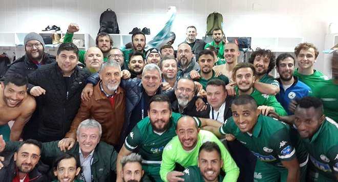 Ligdeki son 5 maçından galibiyetle ayrılan Giresunspor, Süper Lig yolunda emin adımlarla ilerlemeye devam ediyor. Son haftaların en iyi takımı olarak gösterilen ve geride kalan iki maçta 10 gol atan Manisaspor'u 2-1 mağlup eden yeşil-beyazlı takımda keyifler yerinde. Manisaspor galibiyetinin ardından yöneticiler soyunma odasına gelerek futbolcuları tebrik etti. Soyunma odasında futbolculara hitaben konuşma yapan Giresunspor Kulüp Başkanı Mustafa Bozbağ, “Tüm Giresun, 1 milyon taraftar ve ailelerimiz bu maçı bekliyordu. Sizler tüm Türkiye’ye kendinizi gösterdiniz. Allah hepinizden razı olsun. Bu galibiyetin pirimi ise 15 bin lira” dedi.