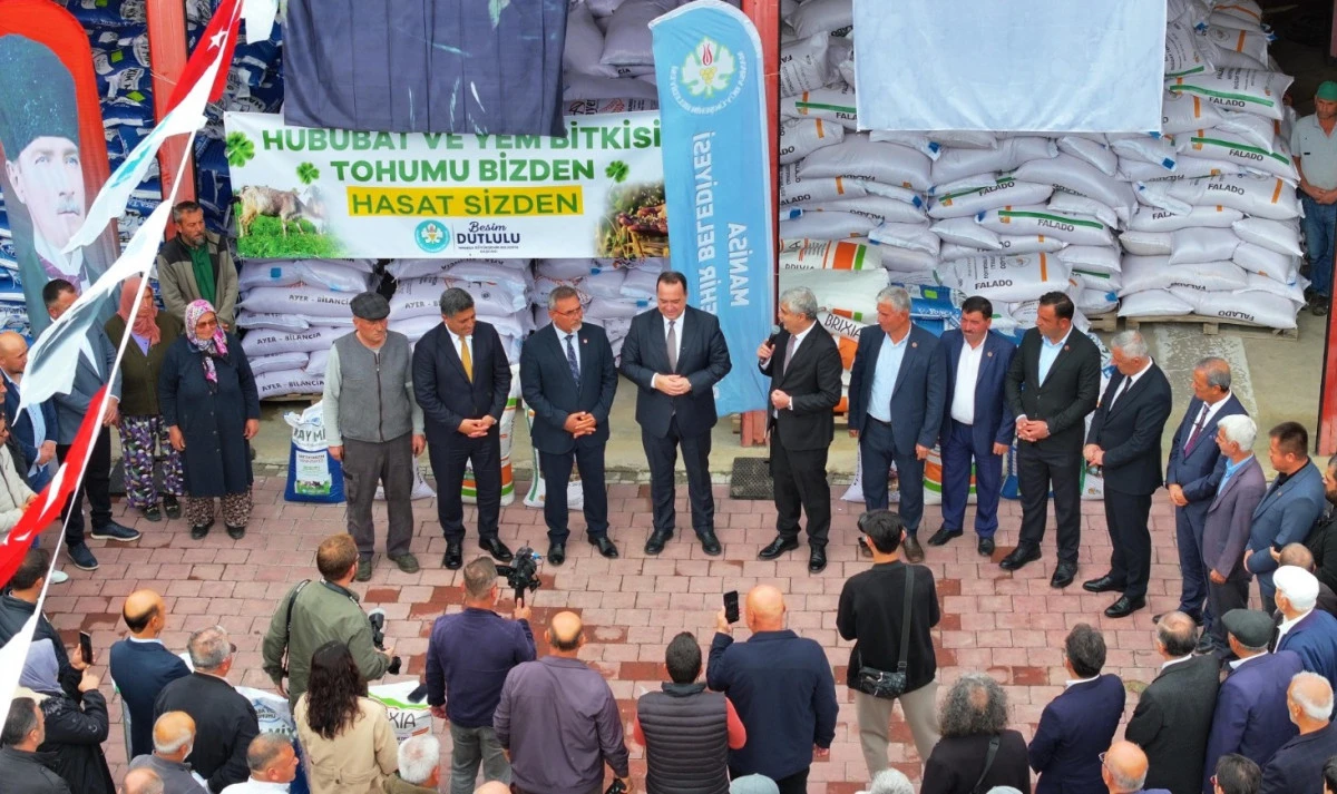 Belediye Başkanı Besim Dutlulu, “Tarımsal üretimi artırmak, üreticilerin gelirlerini yükseltmek ve bereketli topraklarımızın ürünsüz kalmaması için çalışıyoruz. Başlattığımız “Destek Bizden, Hasat Sizden” projesi kapsamında çiftçilerimize nefes aldıracak olan hububat ve yem tohumu dağıtımlarımızı tamamladık. 1397 üreticimize yüzde 75 hibe destekli olmak üzere 404.500 kilogram arpa ve buğday tohumu, 509 üreticimize ise 120.225 kilogram 5’li karışım yem bitkisi ve süt otu tohumu olmak üzere toplamda 1906 üreticimize yaklaşık 525 bin kilogram tohum dağıtımı gerçekleştirdik” dedi.