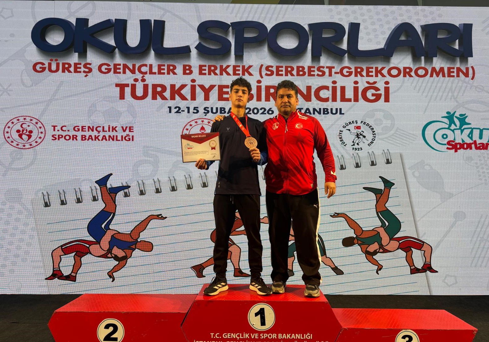 Gençlik ve Spor Bakanlığı tarafından İstanbul’da düzenlenen Okullar Sporları Güreş B Gençler Grekoromen Türkiye Şampiyonası’nda...