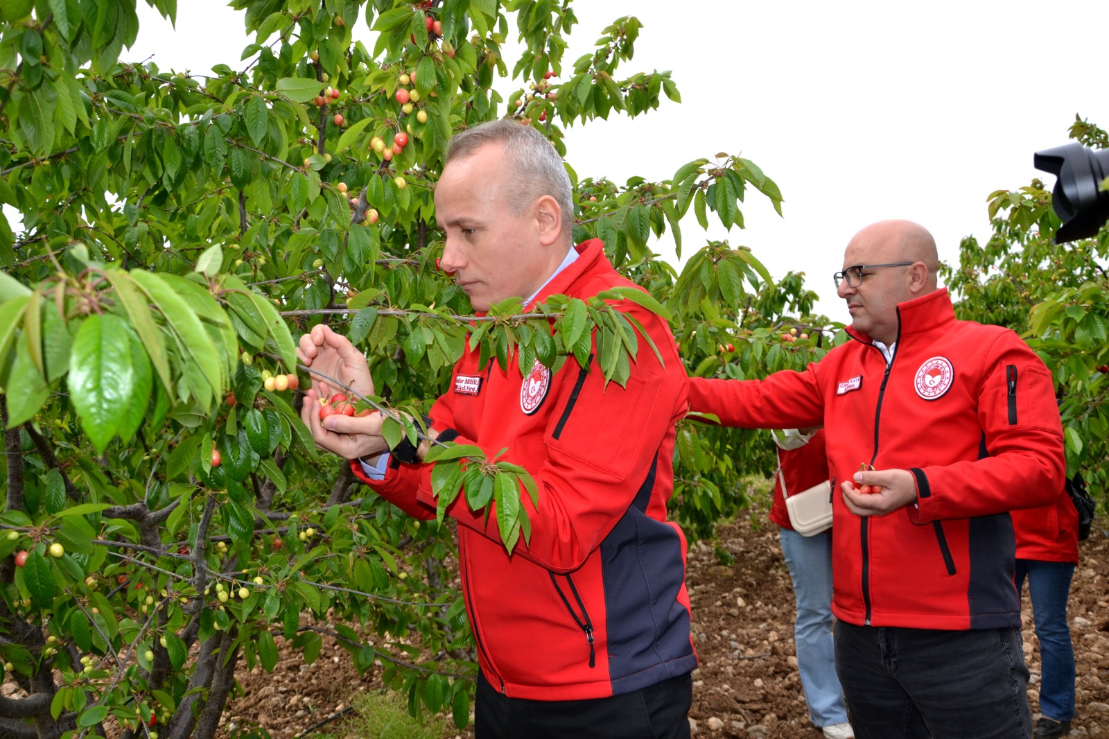 Sabahın erken saatlerinde kiraz üreticileri ile bir araya gelen Manisa İl Tarım ve Orman Müdür Yardımcısı Serdar Mersinli, Şehzadeler ilçe Tarım ve Orman Müdürü Gökmen Kaya, erkenci çeşit kirazların hasadını üreticilerle birlikte yaptı.