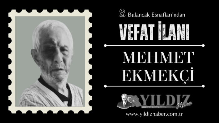 Selahattin, Aysel, Hatice, Sebahat, Günaydın, Aynur ve Murat Ekmekçi'nin babaları, Mehmet Ekmekçi'nin cenazesi 6 Ekim 2024 Pazar (bugün) ikindi namazına müteakip Gıcıklı Camii'nde kılınacak cenaze namazından sonra Bulancak Yeni mezarlığında toprağa verilecek.