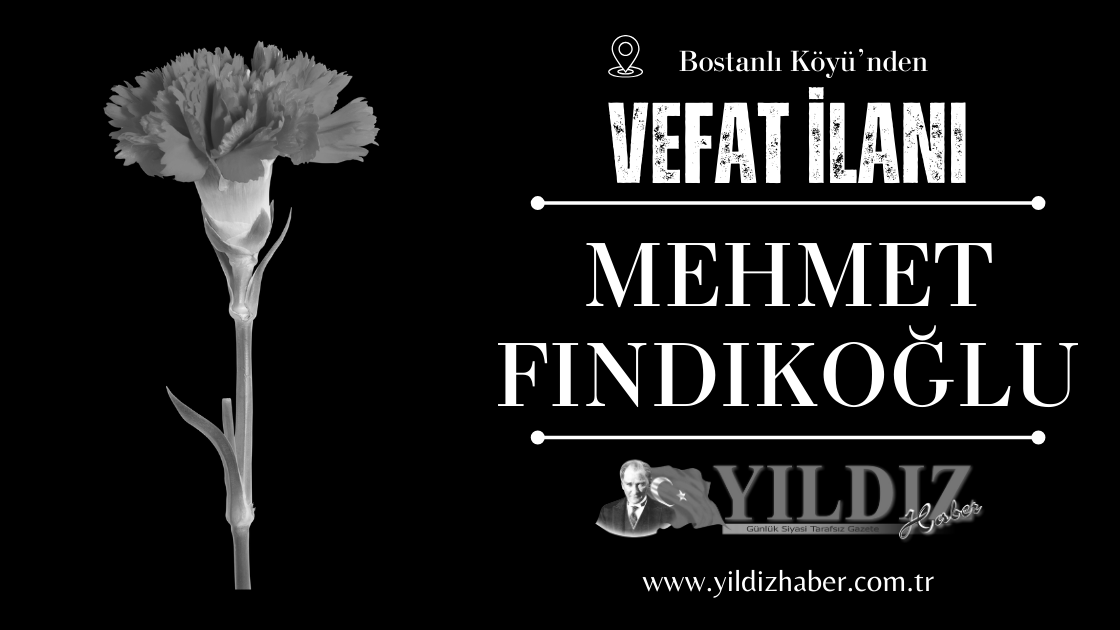 Bostanlı Köyünden, Çelebioğulları'ndan merhum Mutullah Fındıkoğlu'nun oğlu Mehmet Fındıkoğlu vefat etti.