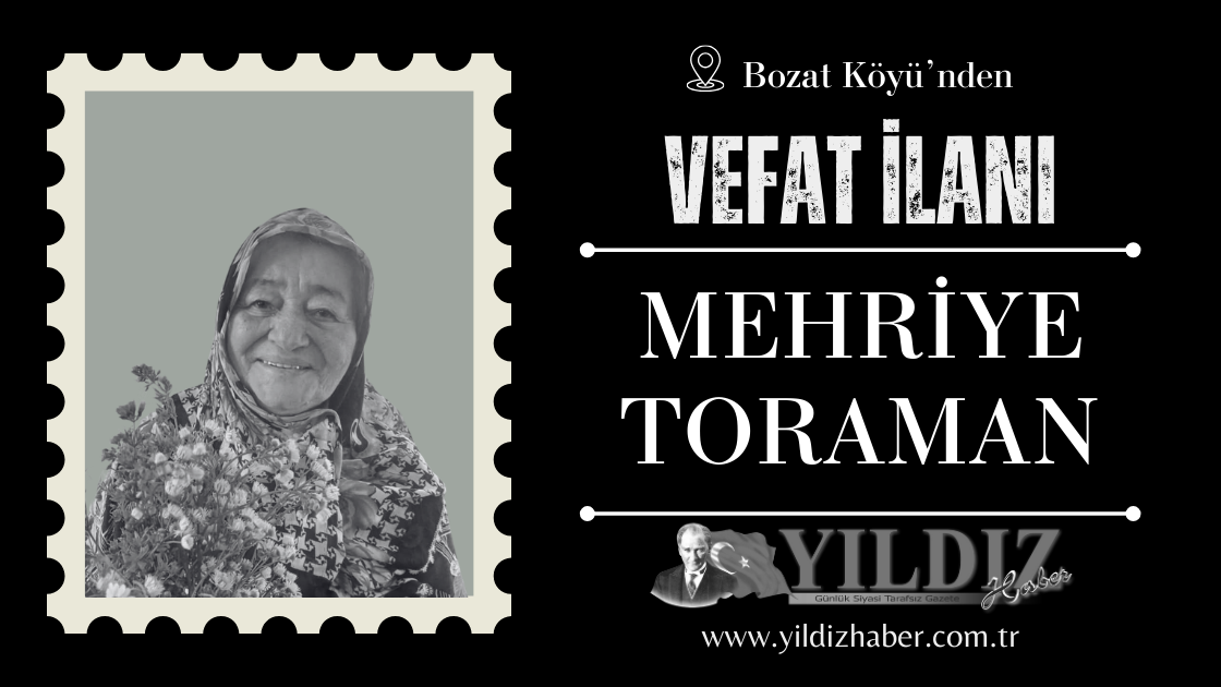 Bozat Köyü, Göldüzü Mahallesi'nden, Toramanoğulları'ndan, Sema Toraman’ın eşi Mehriye Toraman vefat etti.