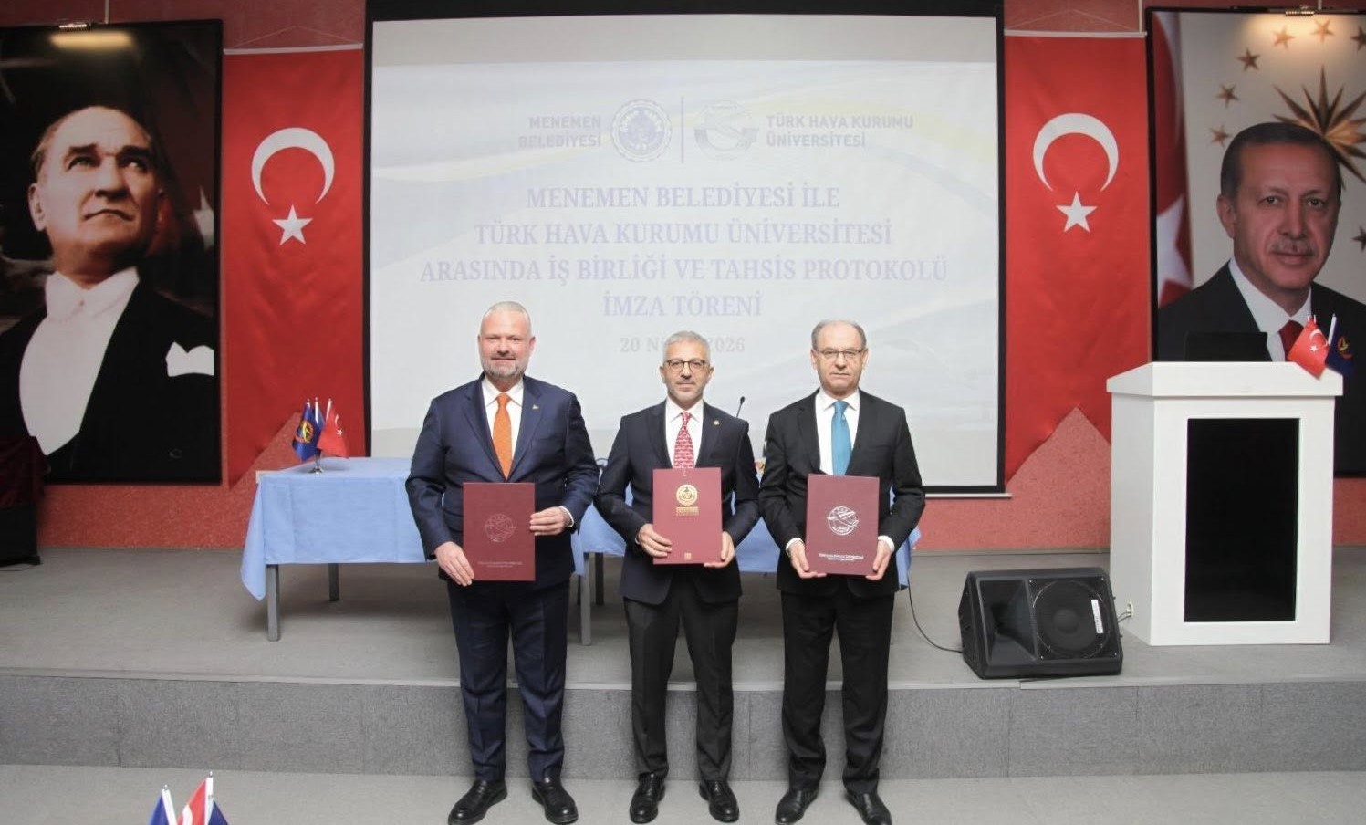 Menemen Belediyesi ve Türk Hava Kurumu Üniversitesi arasındaki tarihi iş birliğinin imzalarıysa Ankara'da atıldı. Menemen Belediye Başkanı Aydın Pehlivan, Türk Hava Kurumu Kayyum Heyeti Başkanı Prof. Dr. Akın Ünal ve Türk Hava Kurumu Üniversitesi Rektörü Prof. Dr. Rahmi Er'in nihai imzalarını attığı dev protokolle birlikte, ilçedeki üniversite sayısı ikiye çıktı.