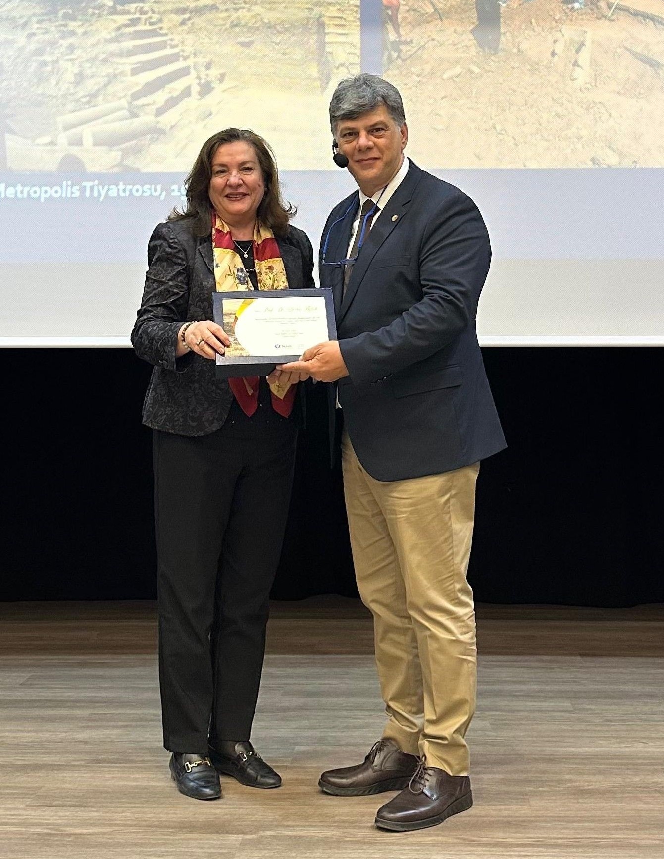 Kentin gün yüzüne çıkarılan en dikkat çekici buluntularından biri olan tiyatro yapısı ve buradaki eserler de sunumda öne çıkan başlıklar arasında yer aldı.
