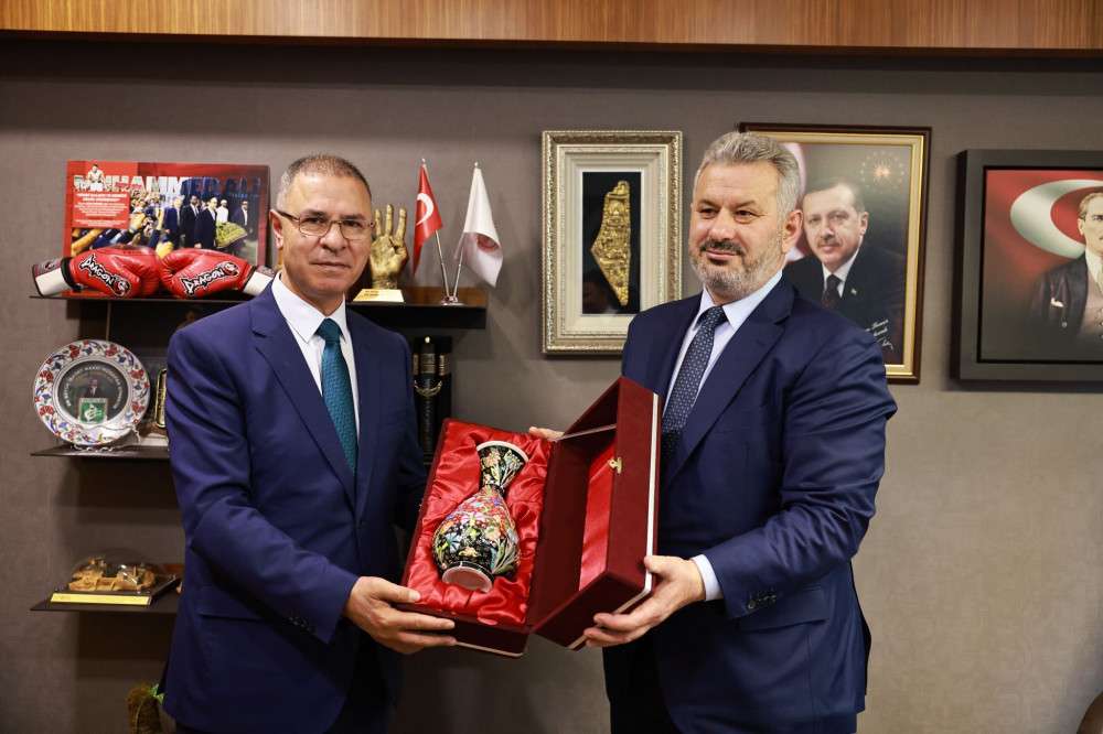TBMM Filistin Dostluk Grubu Başkanı ve İstanbul Milletvekili Hasan Turan’da büyükelçiye günün anısına el yapımı bir vazo hediye etti.