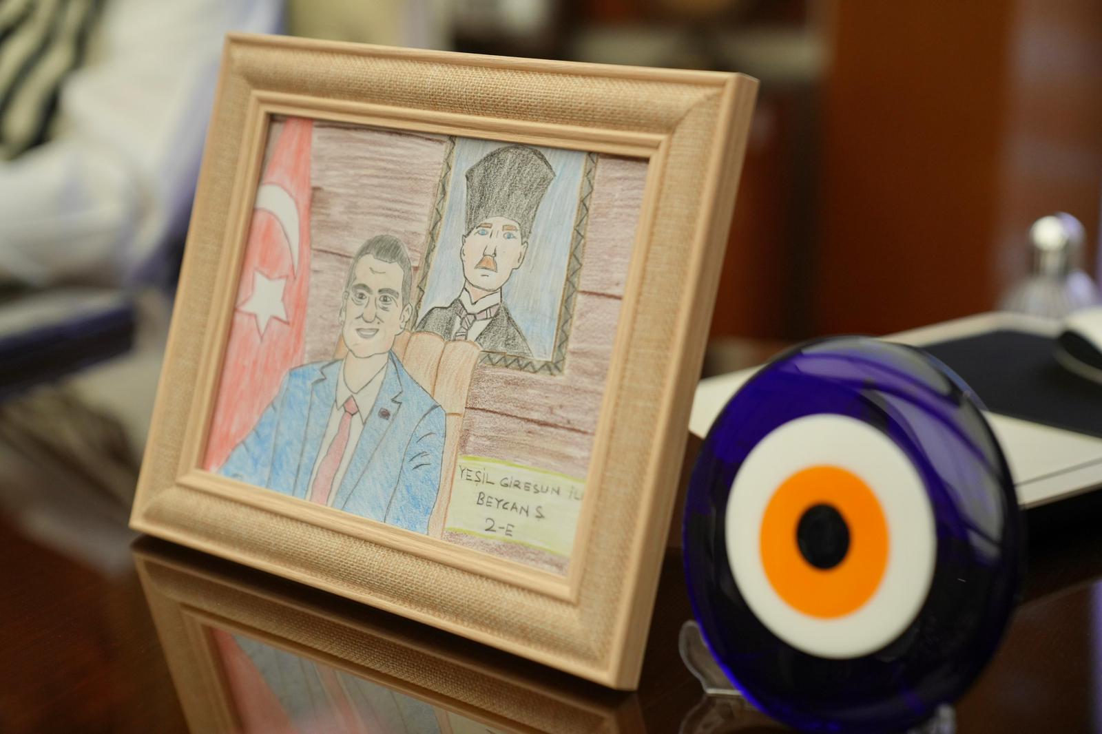 Ayrıca, Beycan Şentürk isimli öğrenci çizmiş olduğu Başkan Fuat Köse resmini, Köse’ye hediye etti.
