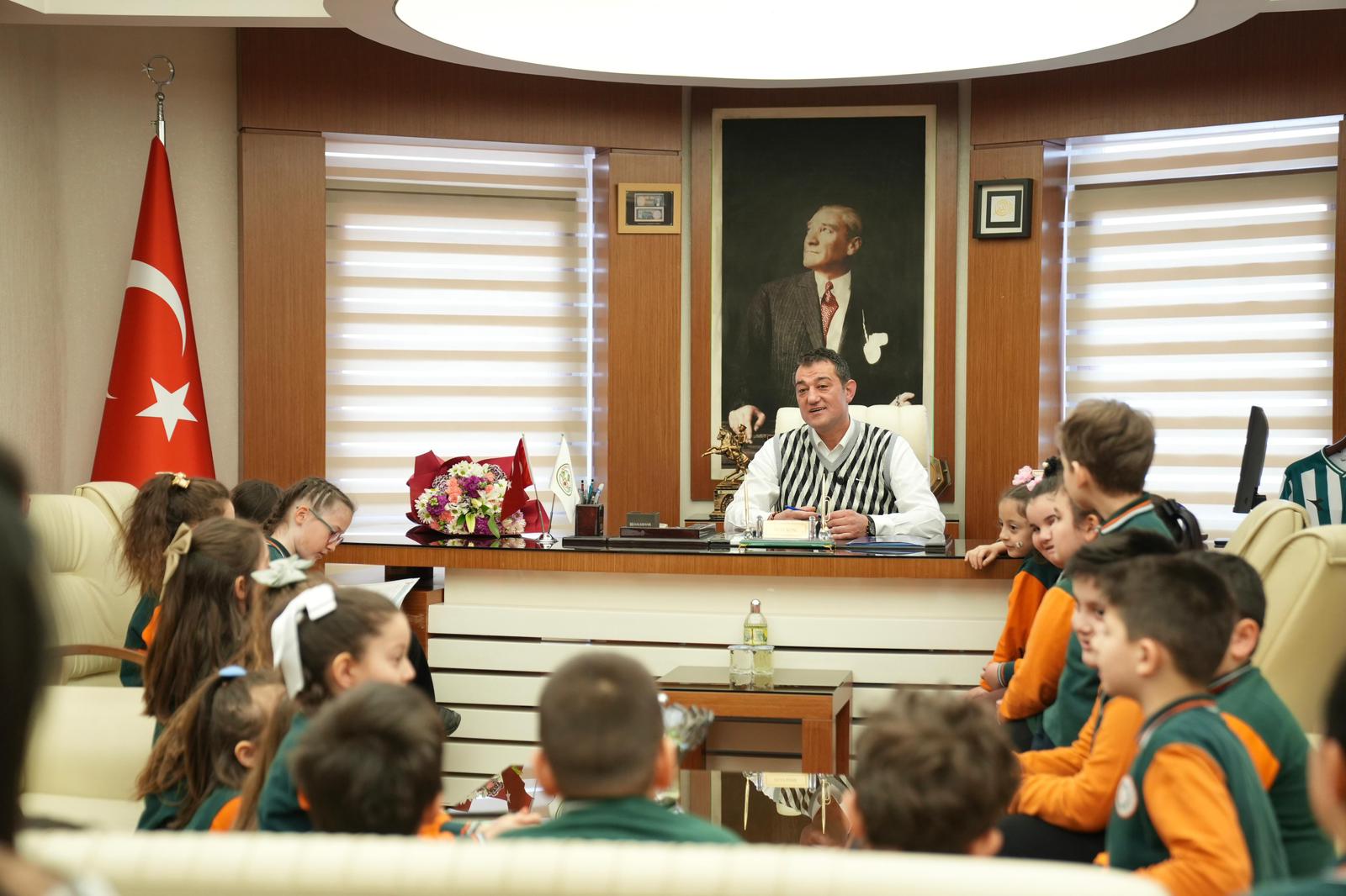 Yeşilgiresun İlkokulu 2/E sınıfı öğrencileri, öğretmenleri Fatma Altuntaş rehberliğinde Giresun Belediyesi’ni ziyaret ederek Belediye Başkanı Fuat Köse ile bir araya geldi.