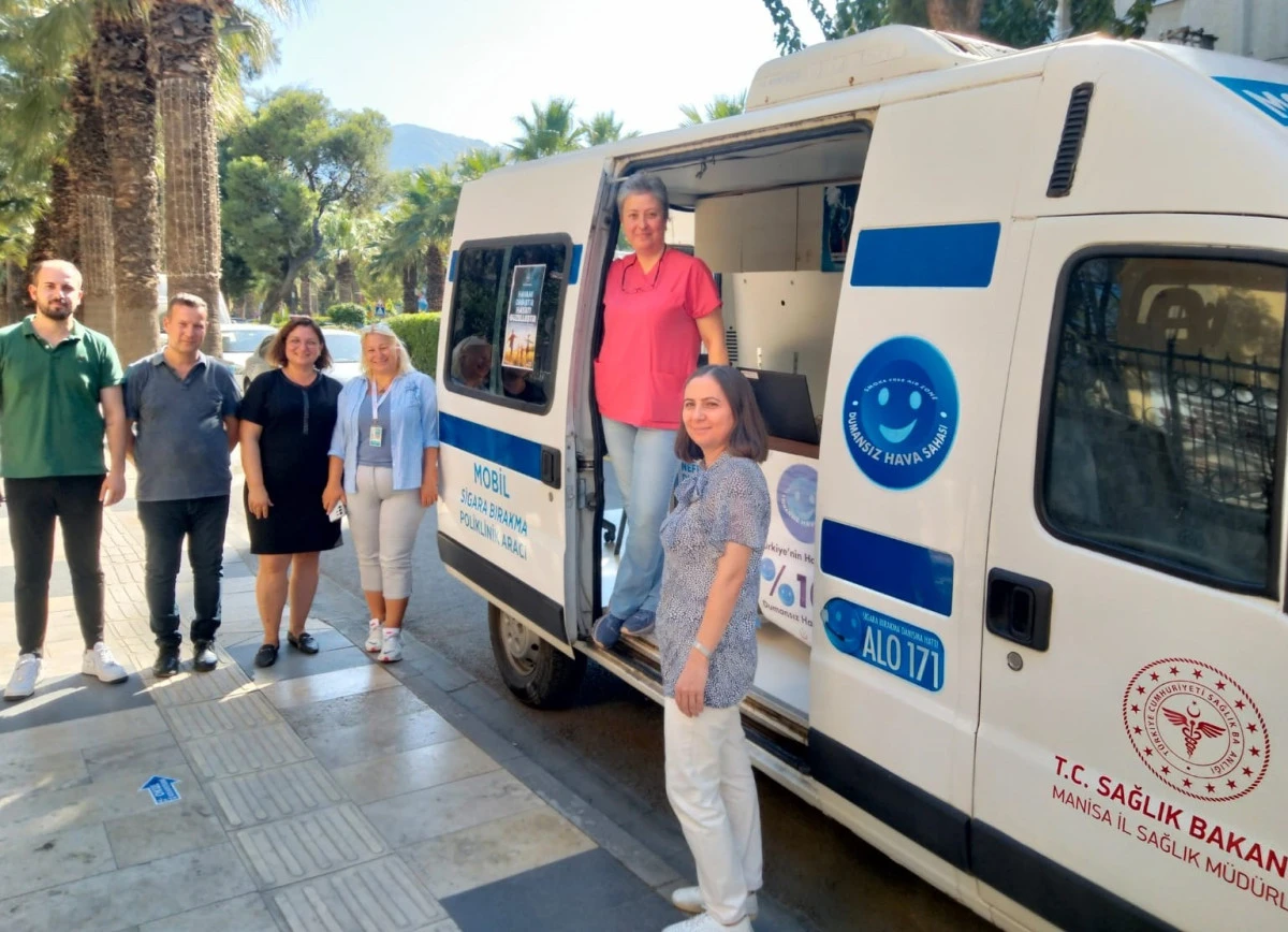 Manisa'da tütünle mücadele kapsamında tütün kullanan vatandaşlarımızda farkındalık oluşturmak için ''Tütün Bağımlılığı Tedavisi Eğitimi almış hekimler aracılığıyla Mobil Sigara Bırakma Aracında poliklinik hizmeti sunulmaya başlandı.