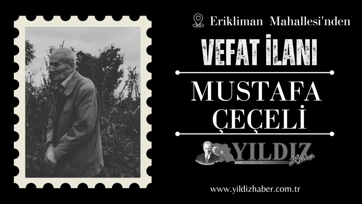 Erikliman Mahallesi’nden Çeçelioğulların’dan merhum Yakup ve Fatma Çeçeli’nin oğulları Mustafa Çeçeli vefat etti.