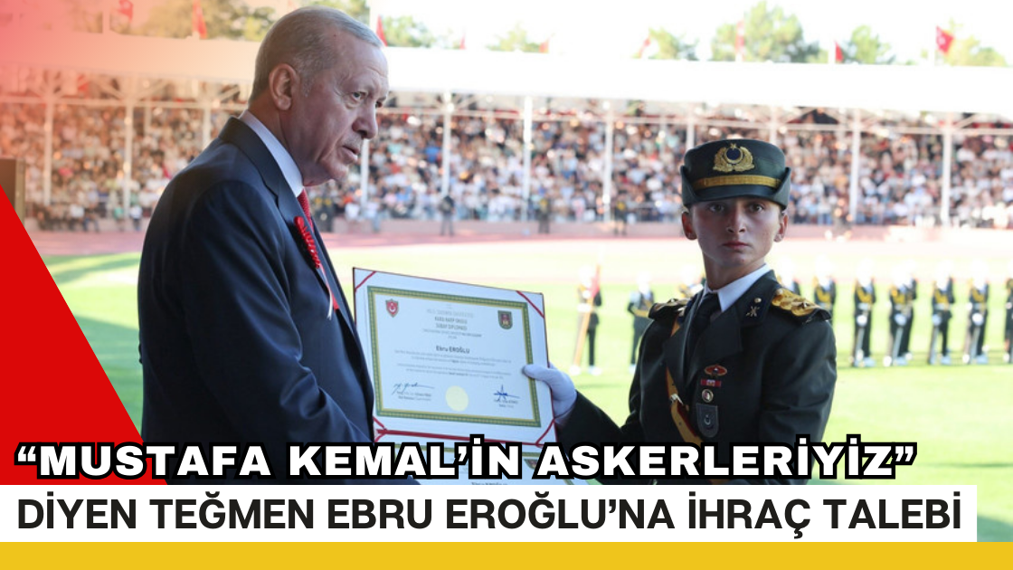 Dönem birincisi Teğmen Ebru Eroğlu, ihraç talebiyle Yüksek Disiplin Kurulu’na sevk edildi. Kara Harp Okulu mezuniyet töreni sırasında, teğmenlerin “Mustafa Kemal’in askerleriyiz” sloganını atarak kılıç çekip yemin etmesi üzerine başlatılan soruşturmada karar verildi. Diplomasını Cumhurbaşkanı Recep Tayyip Erdoğan’ın elinden alan dönem birincisi Ebru Eroğlu, ihraç talebiyle disiplin kuruluna sevk edildi.