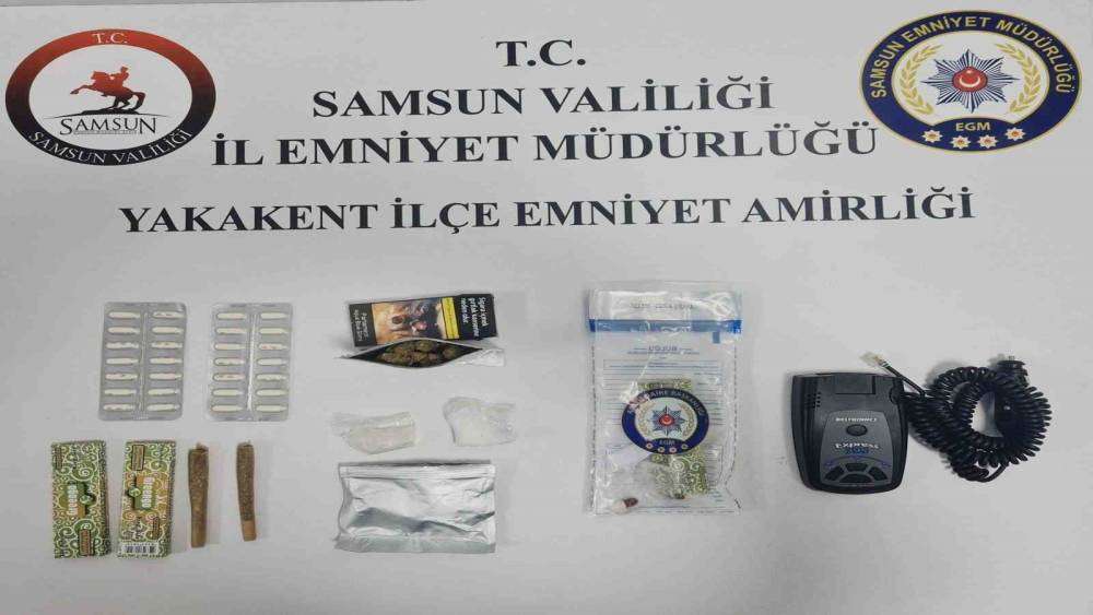 Edinilen bilgiye göre, Samsun’un Yakakent ilçesinde polis tarafından narkotik uygulaması düzenlendi. Yapılan aramalarda, 3.6 gram içime hazır 2 parça halinde esrar, 0.4 gram esrar, 30 adet sentetik ecza, 8.4 gram skunk narkotik madde, 2 parça halinde 16.5 gram metamfetamin ve 1 adet radar tespit cihazı ele geçirildi. Olayla ilgili soruşturma devam ediyor.