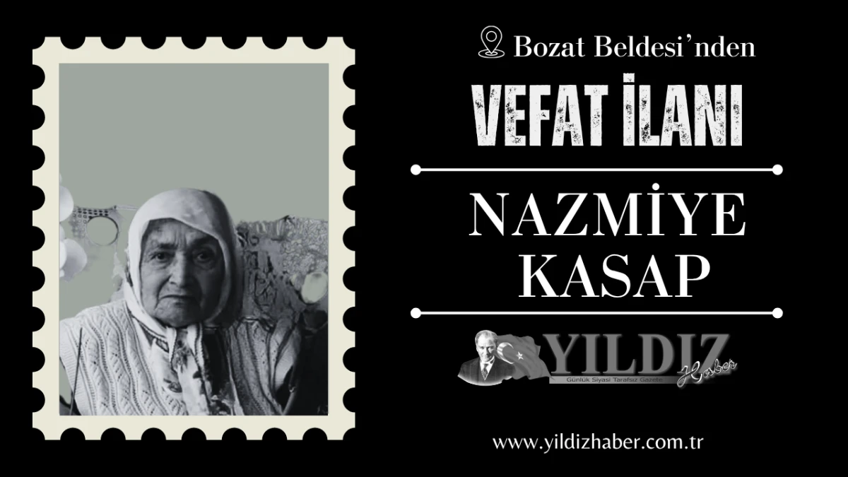 Bozat Beldesi’nden merhum Kadir Kasap’ın eşi, Nazmiye Kasap vefat etti.