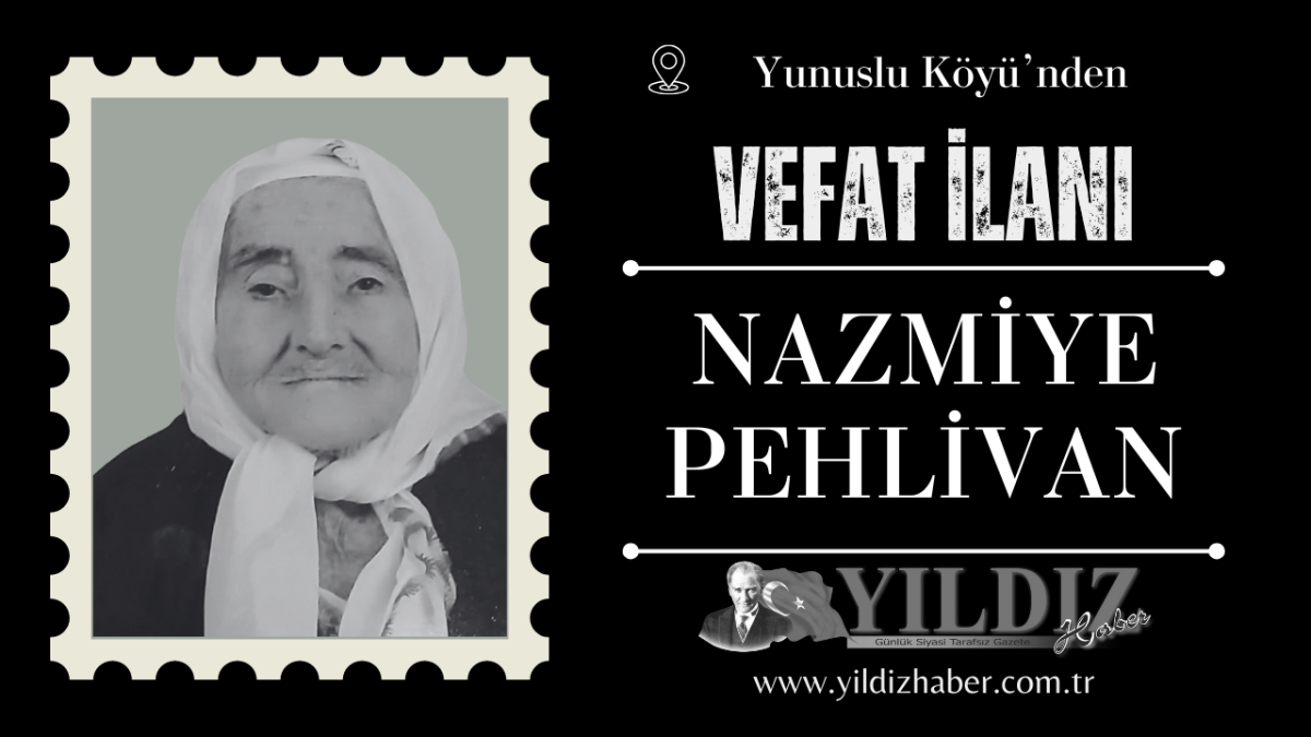 Yunuslu Köyünden Pehlivan oğullarından Nazmiye Pehlivan vefat etti.