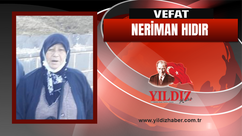 Erdoğan Köyünden Hıdıroğullarından (Bakırcı) Mehmet Hıdır'ın eşi Neriman Hıdır vefat etti.