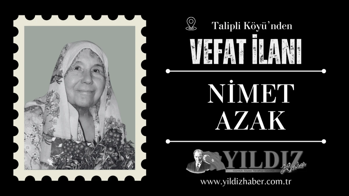 Bahtişen Azak ve Mehtap Azak’ın kayınvalidesi; Sedat Can, Cansu, Sebanur, Gizemnur, Erkan, Kayra, Nisa ve Esma Azak’ın babaanneleri Nimet Azak vefat etti.