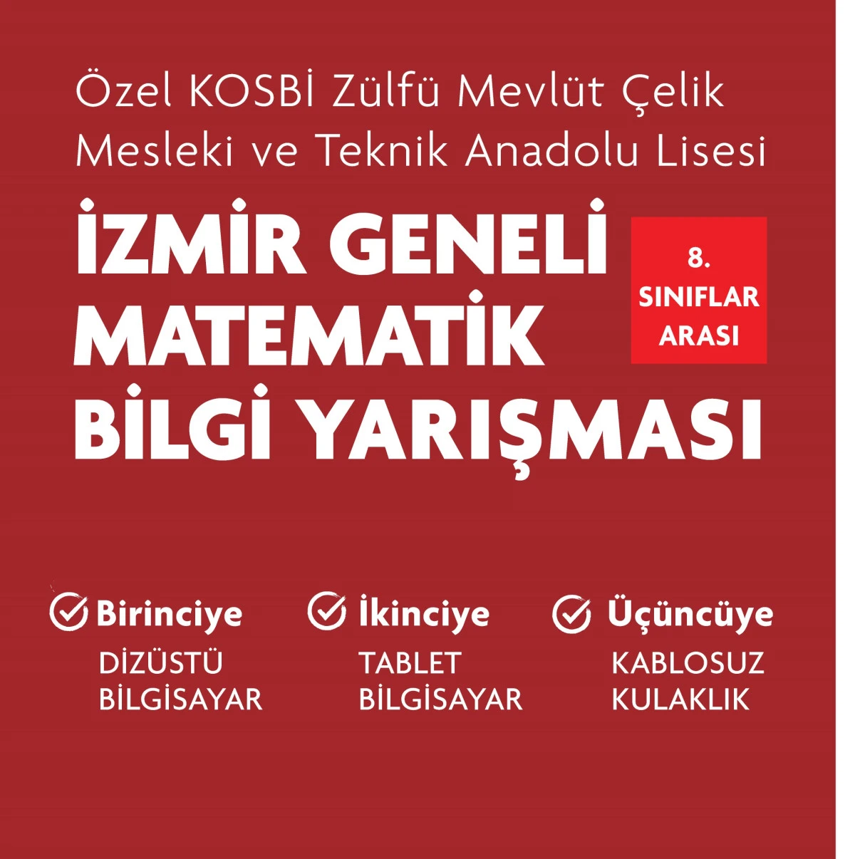 KOSBİ Zülfü Mevlüt Çelik MTAL tarafından düzenlenen İzmir Geneli 8. Sınıflar Arası Matematik Bilgi Yarışması,