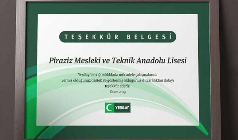 Piraziz Mesleki ve Teknik Anadolu Lisesi öğrencileri Türkiye Yeşilay Cemiyeti’ne bağış yaptı.
