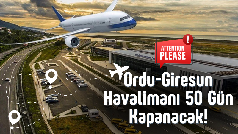 Ordu-Giresun Havalimanı, 16 Eylül 2024 Pazartesi tarihinden itibaren 50 gün boyunca bakım çalışmaları nedeniyle kapalı olacak.