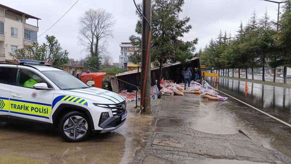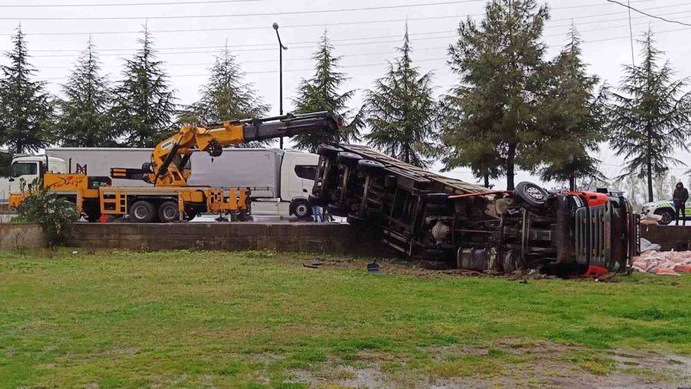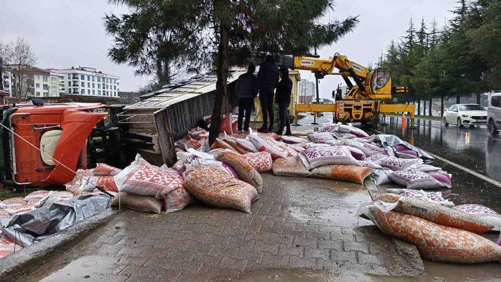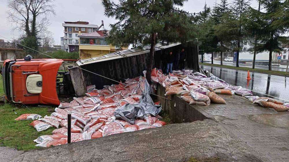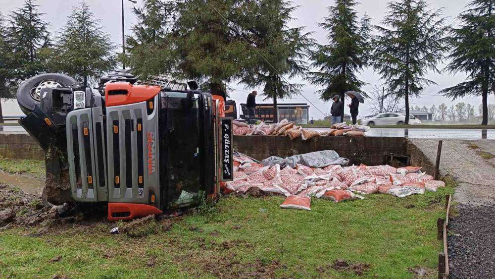 Ordu’da besi yemi yüklü tır devrildi: 1 yaralı