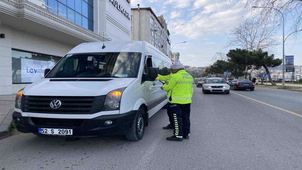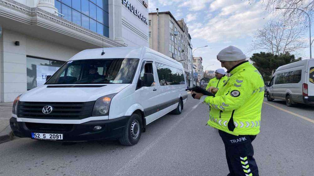 Ordu’da eş zamanlı 4 farklı noktada okul servis araçları denetlendi