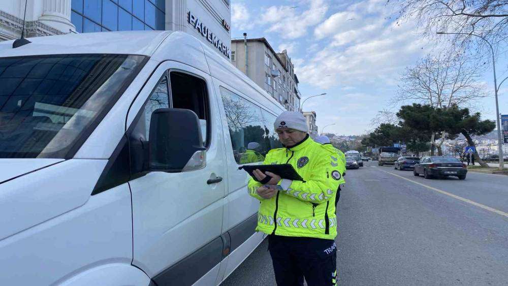 Ordu’nun Ünye ilçesinde, 2024-2025 eğitim-öğretim yılı 2. döneminin başlamasıyla birlikte trafik ekipleri tarafından oluşturulan 4 farklı kontrol noktasında eş zamanlı olarak okul servis araçları denetlendi.
