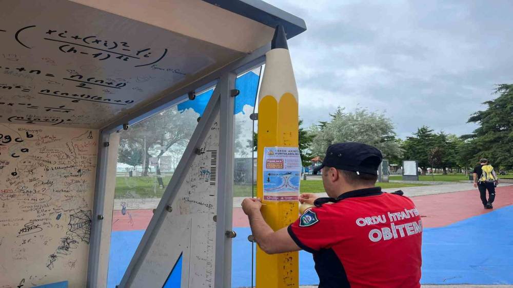 Bu kapsamda ekipler, Karadeniz’de boğulma vakalarına yol açan ‘çeken akıntı’ olarak da bilinen rip akıntısına yönelik vatandaşların yoğun olarak kullandığı noktalar ve dolmuş duraklarına bilgilendirici broşürler yerleştirerek halkı uyarıyor.