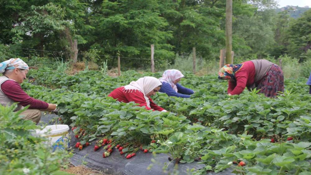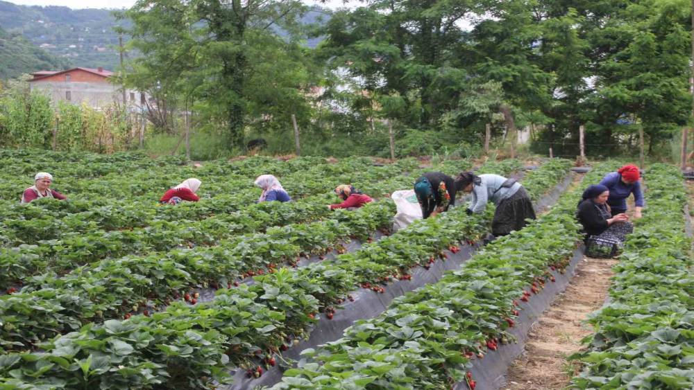 Ordu’da üretimi yapılan çilekte hasadın büyük bir kısmını yapan kadınlar, yılın yarısını tarlada geçirerek, aile ekonomilerine ciddi katkı sağlıyor.