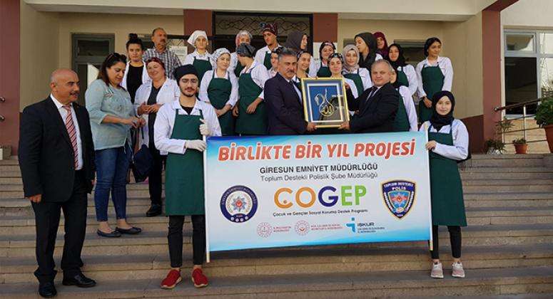 Giresun Emniyet Müdürlüğü öncülüğünde, İŞKUR desteğiyle, Giresun Halk Eğitimi Merkezi Müdürlüğü işbirliği ile sosyal sorumluluk projesi kapsamında “Birlikte Bir Yıl” Aşçı yardımcılığı kursu yürütülmektedir.