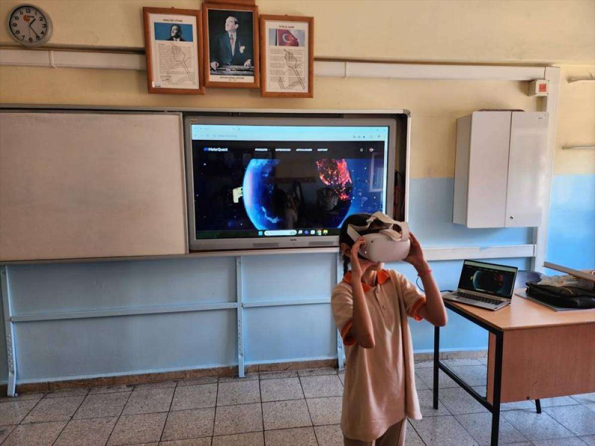 Ziyapaşa Ortaokulu'nda 6. sınıf öğrencilerini "Artırılmış gerçeklik, metaverse ve sanal gerçeklik gözlüğü" ile uzay yolculuğuna çıkardı.