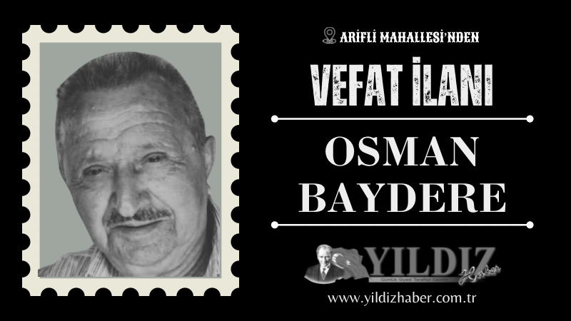 Arifli Mahallesi’nden Leyla Baydere’nin eşi; Bulancak esnaflarından Celal Baydere, Ayten, Güven ve Zeliha Çolak'ın babaları Osman Baydere vefat etti.