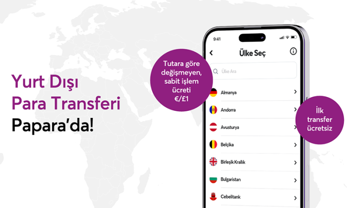 Özellikle transfer edilen tutara göre değişen maliyetler, yurt dışı para transferini zahmetli hâle getiriyor. Yurt dışı para transferinde maliyetleri azaltmak isteyen Papara, Avrupa ülkelerine yapılan transferlerde işlem ücretini 1 avro, Birleşik Krallık’a yapılan transferlerde ise 1 sterlin olarak sabitledi. Ayrıca işlem ücretinin, gönderilen tutara göre değişmeyeceği belirtildi.