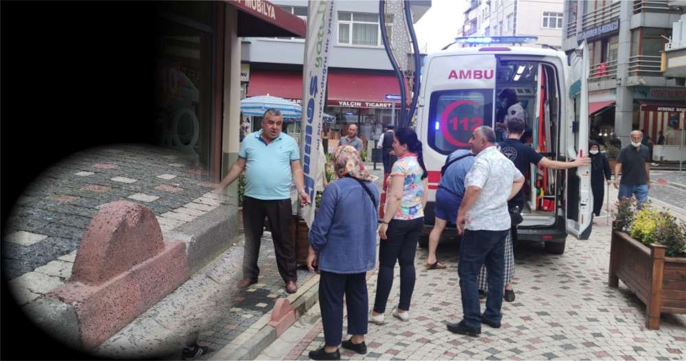 Bulancak Mahallesi Terazi Sokakta kaldırım kenarına yapılan park önleyici taş dubaya takılan bir kadın vatandaşın ayağının takılmasıyla düştüğü ve kafasından yaralandığı öğrenildi.
