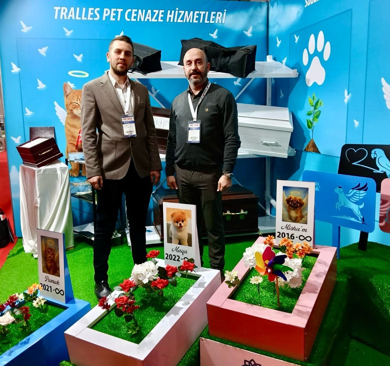 Tralles Pet Cenaze Hizmetleri firması kurucularından Eray Erbekçi, “13 yıldır insan üzerine cenaze hizmetlerine üzerine faaliyet gösteriyoruz. Sektörümüze Pet grubunu ekleyebileceğimizi düşündük. Cenaze ve defin organizasyonunda olması gereken ürünlerin imalatını yaptık. İlk lansmanını bu fuarda yapıyoruz. Ürünlerimiz arasında ex taşıma çantaları, demonte mezarlarımız, tabularımız, mezar başı levhalarımız var. İnsanların can dostlarını defnetmeyi bilmiyor. Defin için özel mezarlıklarla anlaşmalarımız var. İzmir’de ve Aydın merkezde özel mezarlarımız olacak” diye konuştu.