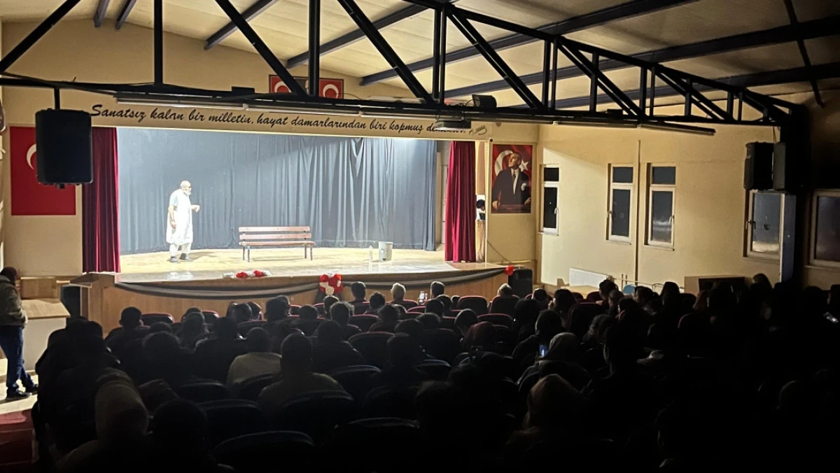 İlçe Milli Eğitim Müdürü Yunus Aydın'ın da katıldığı oyun, İsmail Yücel Mesleki ve Teknik Anadolu Lisesi salonunda Pazartesi akşamı saat 19.00'da gerçekleşti ve öğrenciler tarafından ilgiyle izlendi.