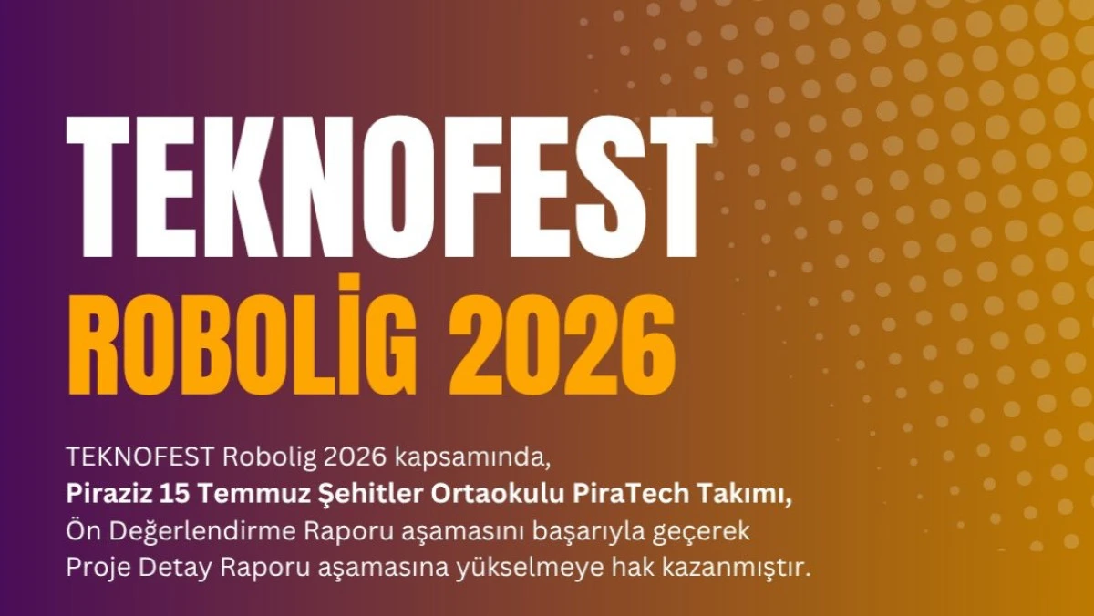 Piraziz 15 Temmuz Şehitler Ortaokulu bünyesinde çalışmalarını sürdüren PiraTech Takımı, TEKNOFEST Robolig 2026 kapsamında Ön Değerlendirme Raporu aşamasını başarıyla geçerek Proje Detay Raporu aşamasına yükselmeye hak kazandı. Milli Teknoloji Hamlesi vizyonuyla hareket eden öğrenciler, üretme, düşünme ve tasarlama becerileriyle önemli bir başarı elde etti. Dünyanın en büyük havacılık, uzay ve teknoloji festivallerinden biri olan TEKNOFEST'te elde edilen bu gelişme, Piraziz adına büyük bir gurur kaynağı oldu. Danışman öğretmen Emrah Güler rehberliğinde yürütülen projede öğrenciler Ömer Faruk Çevik, Seyit Aras Ay ve Mustafa Aktürk aktif rol aldı. Özverili çalışmalarıyla dikkat çeken ekip, bir üst aşamaya yükselerek ilçeyi başarıyla temsil etmeye devam ediyor. Başarılarıyla göğsümüzü kabartan öğrencilerimizi, danışman öğretmenlerini ve emeği geçen herkesi tebrik ediyor; TEKNOFEST yolculuklarında başarılarının devamını diliyoruz.