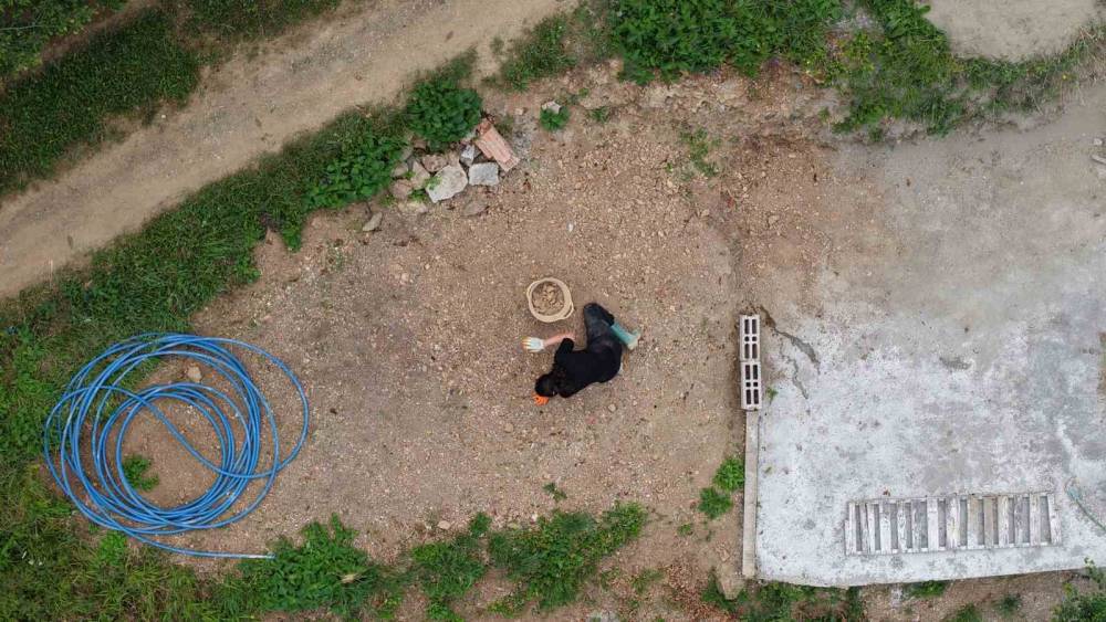 Deprem korkusu ve doğaya özlemle yola çıkan Tekinbaş, yıllardır tek başına köyde hem üretim yapıyor hem de yaşam alanını kendi elleriyle inşa ediyor.