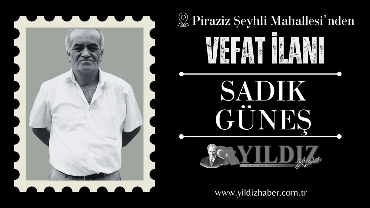 Şükran Güneş’in oğlu, Dudu, Şenol, Kemal ve Yakup Güneş’in kardeşleri Sadık Güneş vefat etti.