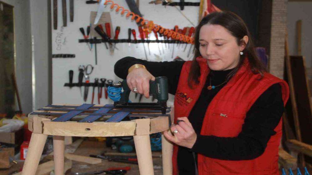 Yıllar önce eşinin yanına yardıma gittiğinde elinin bu mesleğe yatkın olduğunu fark ettiğini anlatan Öztürk, “Koltuk döşeme atölyem var, tamirat ve imalat yapıyorum. Ben bu mesleğe ilk olarak eşime yardım olsun diye başladım. İlk olarak iş yerini bekleme, müşteri karşılama, koltuk sökme gibi işlemler yaptım. Sonrasında elimin yatkın olduğunu gördüm. Eşime destek olmak isterken işin ortasında kendimi buldum. Gayet de güzel oldu” diye konuştu.