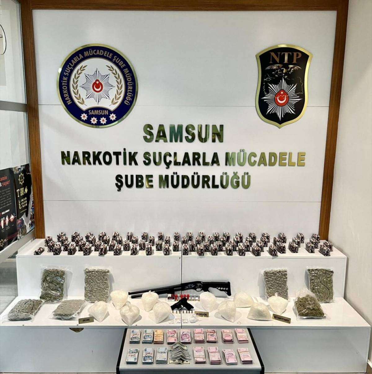 İl Emniyet Müdürlüğüne bağlı Narkotik Suçlarla Mücadele Şubesi ekipleri, İstanbul'dan Samsun'a yüklü miktarda uyuşturucu sevkiyatı yapılacağı yönündeki istihbarat üzerine şüpheliler B.A, M.K.D, A.E, B.E, M.Z. ve E.T'yi takibe aldı. Takip sonucu şüphelilerin kente 2 lüks araçla, alternatif köy yollarını kullanarak giriş yaptığı tespit edildi. Ekipler, araçlardan birini İlkadım ilçesi Kökçüoğlu Mahallesi'ne, diğerini ise Atakum ilçesi Küçükkolpınar Mahallesi'ne giderken düzenlenen eş zamanlı operasyonla durdurdu. İki araçtaki aramalarda, 10 kilogram metamfetamin, 8 bin 332 sentetik ecza hapı, 3 kilo 281 gram sentetik uyuşturucu, 64 gram kokain, 1 ruhsatsız tabanca, 7 tabanca fişeği, 1 ruhsatsız tüfek, 8 tüfek kartuşu ve uyuşturucu ticaretinden elde edildiği değerlendirilen 237 bin 700 lira ile 4 bin 730 dolar ele geçirildi. Gözaltına alınan 6 kişi, İl Emniyet Müdürlüğü'ne götürüldü.