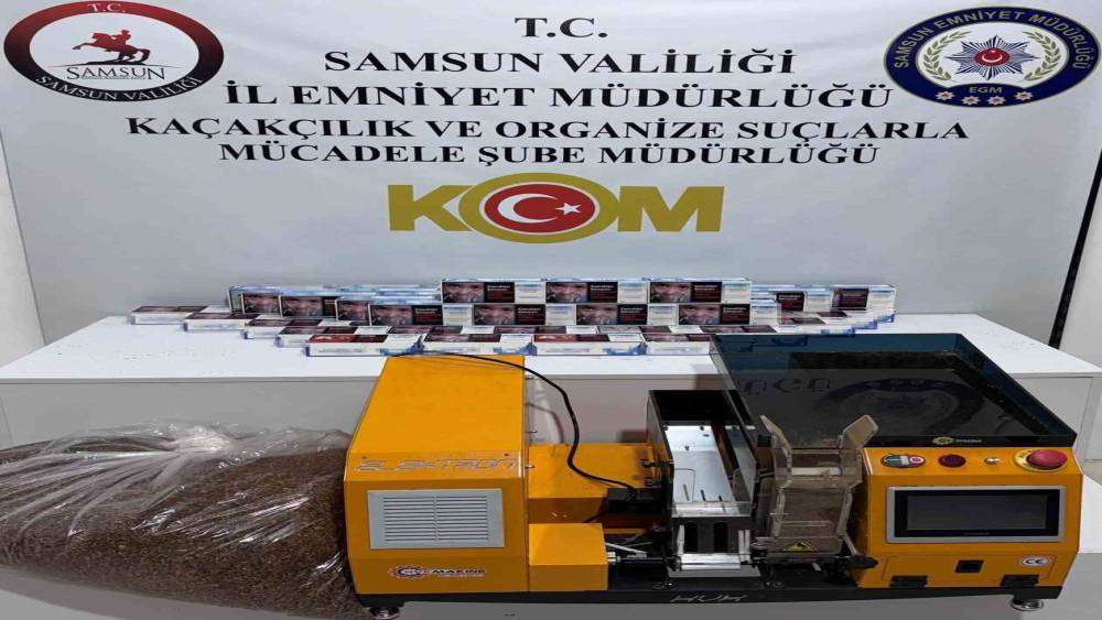 Samsun’da polis tarafından düzenlenen operasyonunda 11 bin 600 adet kaçak makaron, 1 adet elektrikli sigara sarma makinesi ile tütün ele geçirildi.