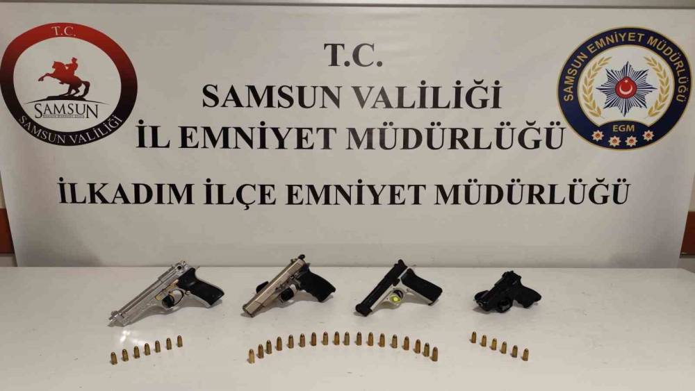 İlkadım İlçe Emniyet Müdürlüğü Suç Önleme ve Soruşturma Büro Amirliği ekiplerince yürütülen saha çalışmaları çerçevesinde, 2 şüphelinin üzerinde ve ikametlerinde arama yapıldı. Yapılan aramalarda, 2 adet ruhsatsız tabanca, 2 adet kuru sıkı tabanca ve 31 adet tabanca fişeği ele geçirildi.