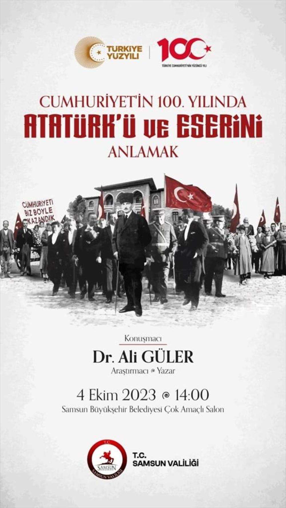 Samsun Valiliğince, Cumhuriyet'in 100. yılı etkinlikleri kapsamında "Atatürk ve Eserlerini Anlamak" konferansı düzenleneceği bildirildi.