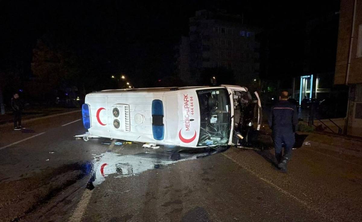 Kazada devrilen ambulansın şoförü Barış E, acil tıp teknisyenleri Mehmet U, Seval B, hasta Gamze Ç. ve refakatçi Nurten Ç. yaralandı.