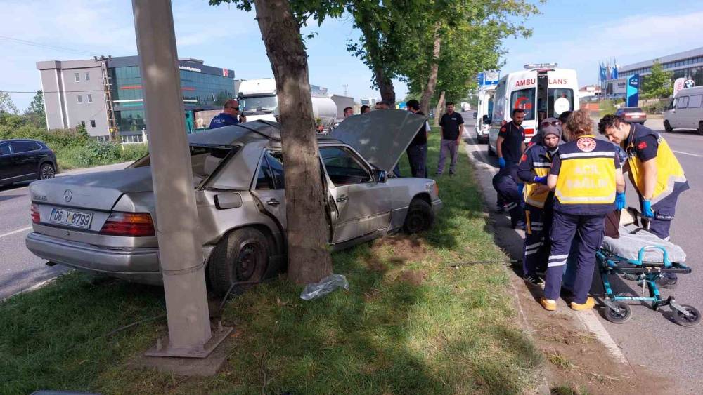 Samsun’da otomobil önce tıra, ardından ağaca çarptı: 1 yaralı