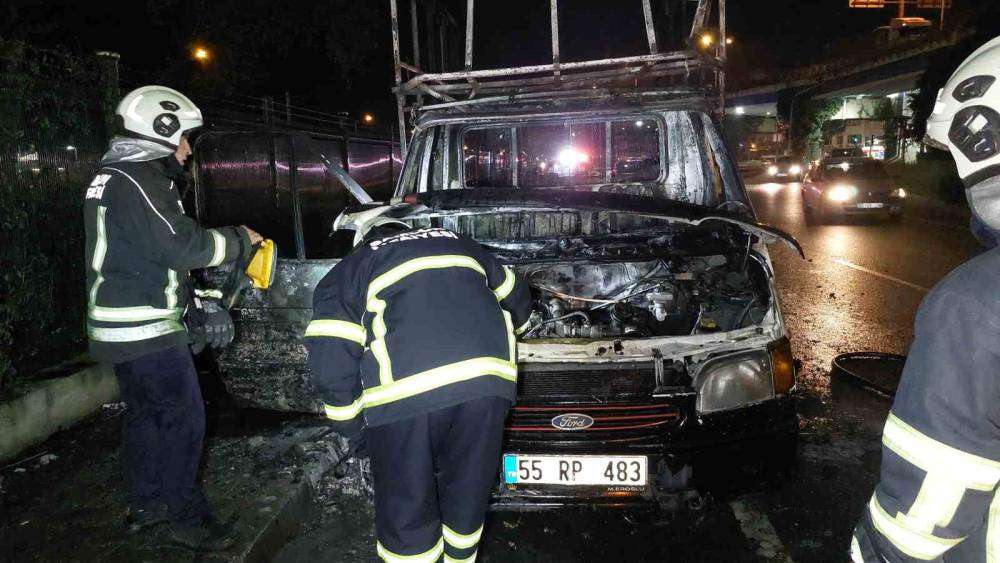 Samsun’da seyir halindeki kamyonet alev alev yandı