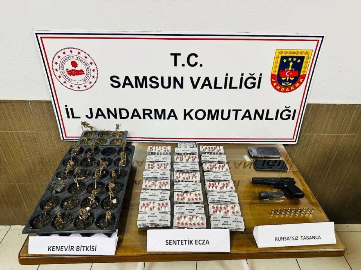 Kaçakçılık ve Organize Suçlarla Mücadele Şube Müdürlüğü, İstihbarat Şube Müdürlüğü ve Çarşamba İlçe Jandarma Komutanlığı ekipleri tarafından, şüphelilere ait ikamet ve iş yerine gerçekleştirilen operasyonda 1046 sentetik ecza hapı, ruhsatsız tabanca ile 24 kök kurutulmuş kenevir bitkisi ele geçirildi.