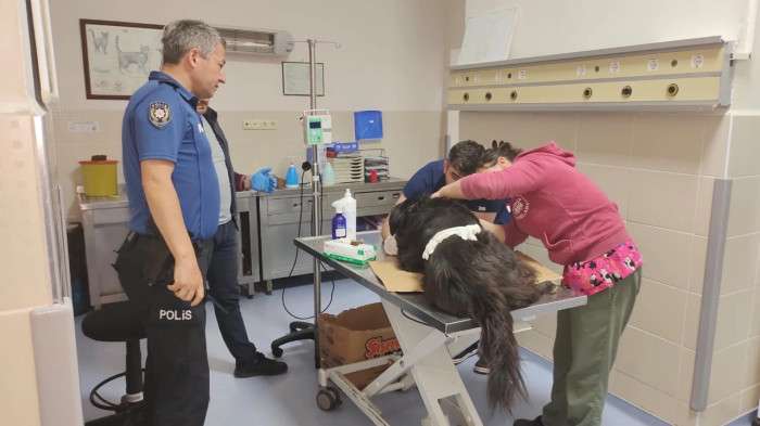 Olay yerine gelen ekipler, köpeği araca yerleştirerek Hayvan Hastanesi Acil Müdahale Bölümüne götürdü. Köpek, burada tedavi altına alındı.