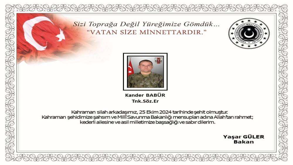 Görev yeri Şırnak’ta nöbet sırasında kalp krizi geçiren Samsunlu Tank Sözleşmeli Er Kander Babür tedavi gördüğü hastanede kurtarılamayarak şehit oldu. Nöbet sırasında fenalaşan Kander Babür, üs bölgesinde yapılan ilk müdahalenin ardından Şırnak’tan kalkan helikopter ile Şehit Tümgeneral Aydoğan Aydın Devlet Hastanesi’ne kaldırıldı. Burada yapılan yaklaşık 45 dakikalık kalp mesajına cevap vermeyen Tank Sözleşmeli Er Kander Babür, şehit oldu.