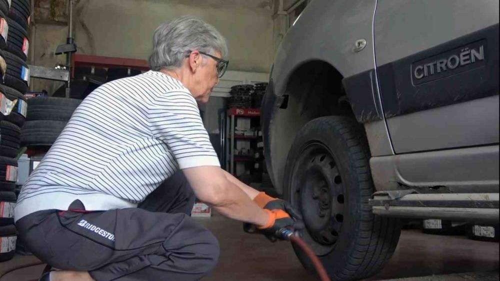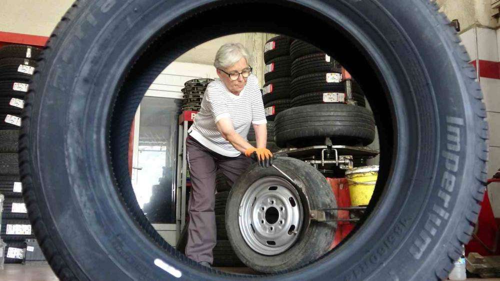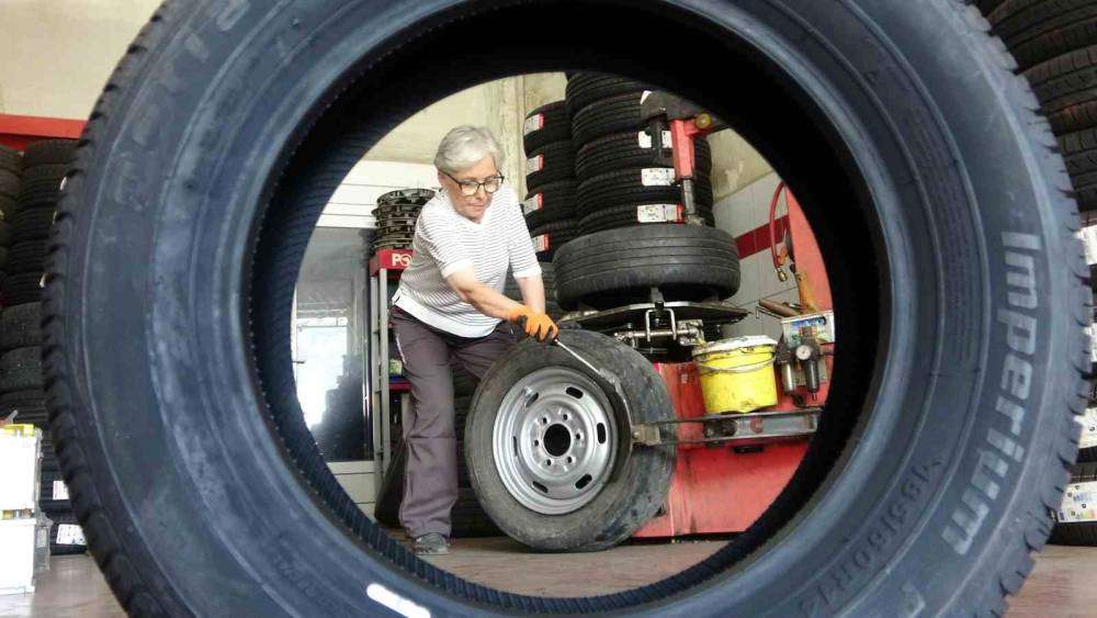 Giresun sanayi sitesinde evlenmeden önce babasıyla başladığı mesleğini, evlendikten sonra da eşine ait işyerinde yaz kış demeden lastik tamir eden, müşterilerinin “Emine ablası” Dilek Emine Domaçoğlu, bu mesleği yapmaktan mutlu olduğunu söyledi.